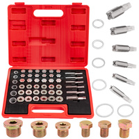 W tej kategorii zakupić można zestawy naprawcze do gwintów korków olejowych. Niektóre z nich zawierają nawet 114 elementów, przydatnych w różnych pracach przy regeneracji aut. W zestawach, które zakupić można w naszym sklepie, znajdują się zarówno kwadratowe, jak i sześciokątne klucze, a także pokrętła z przetyczką. Gwintowniki jednostopniowe dostępne są w każdym rozmiarze wraz z podkładkami. Po nacięciu gwintu należy zamontować w misce olejowej jeden z korków znajdujących się w zestawie. Należy pamiętać, iż rozmiar gwintownicy każdorazowo powinien być taki sam lub nawet większy, niż rozmiar otworu znajdującego się w misce olejowej. Klucze do korków olejowych służą do ich odkręcania i znajdują swoje zastosowanie w przypadku większości modeli samochodów.