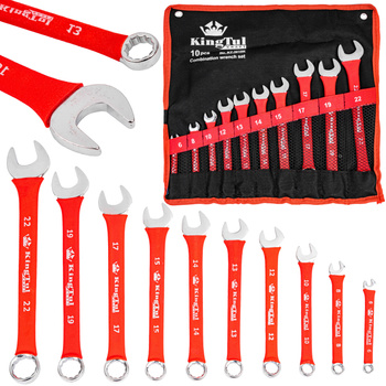 Klucze płasko oczkowe 6-22mm 10 sztuk antypoślizgowe KINGTUL