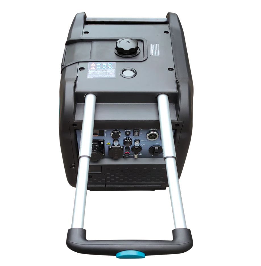 Dwa kółka i podnoszona rączka podczas przemieszczania generatora zapewniają wygodny transport i mobilność urządzenia.