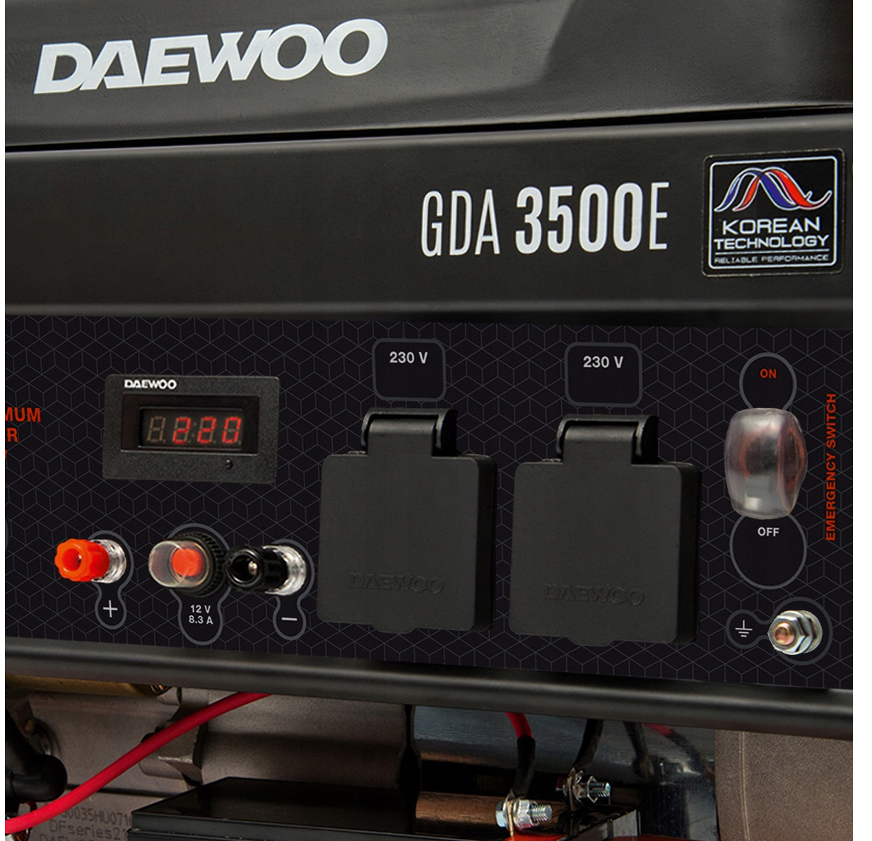 Daewoo GDA 3500E to solidny, dobrze przemyślany agregat prądotwórczy AVR 3,2 kW, który łączy moc, niezawodność i obsługę przyjazną użytkownikowi. Dzięki stabilizacji napięcia, silnikowi Euro 5, rozruchowi elektrycznemu, dużemu zbiornikowi paliwa oraz rozbudowanemu systemowi zabezpieczeń doskonale sprawdza się jako zasilanie awaryjne dla domu, a także jako praktyczne źródło energii w warsztacie, na działce czy na budowie.