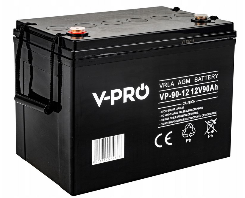 AKUMULATOR BEZOBSŁUGOWY AGM DO UPS PIECA KAMPERA JACHT MOCNY 12V 90Ah VPRO VOLT POLSKA