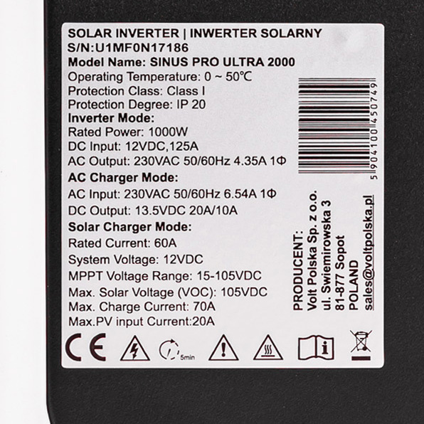 Inwerter solarny SINUSPRO ULTRA 60A MPPT (12V/230V/2000W) VOLT POLSKA