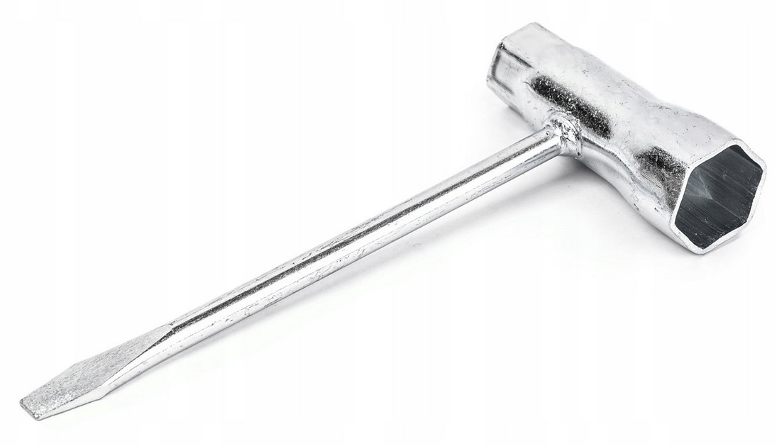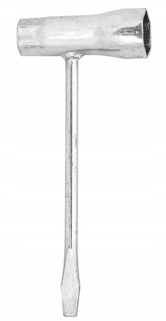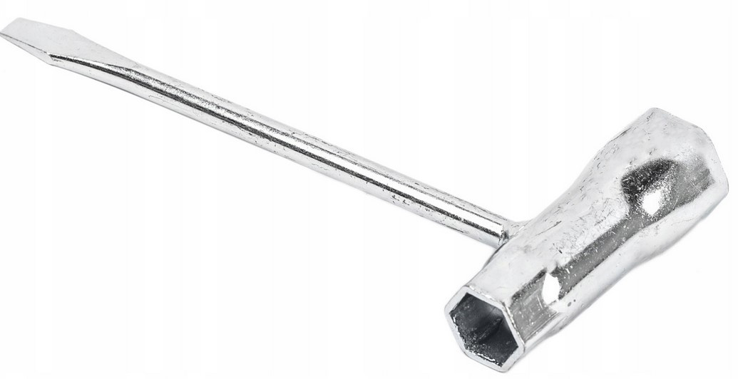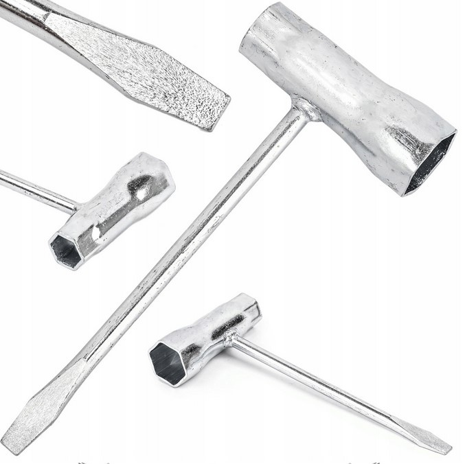 Klucz wyposażony w nasadkę 13 mm i 19 mm, dodatkowo zakończony śrubokrętem płaskim — dającym możliwość wyregulowania np. gaźnika.