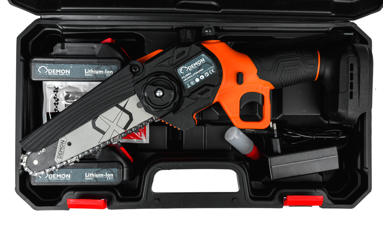 Mini pilarka piła łańcuchowa 6" 15 cm gałęziówka akumulatorowa 21V 2 x AKU M66162 DEMON