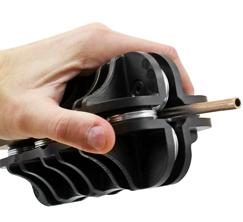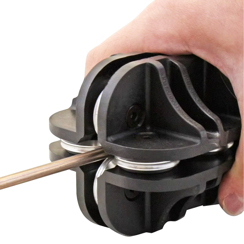 Urządzenie umożliwia szybkie i dokładne wyrównanie rur o średnicy zewnętrznej 1/4 cala (6,35 mm) bez ryzyka ich zgniecenia lub uszkodzenia.