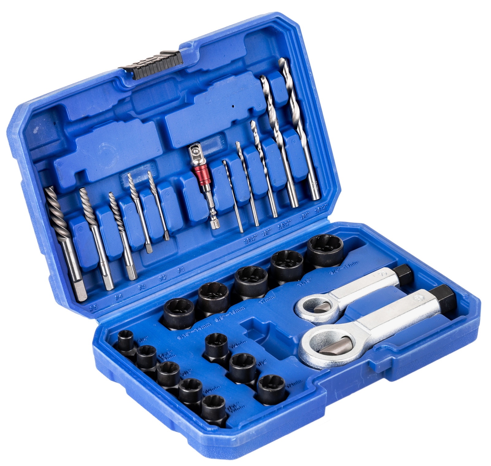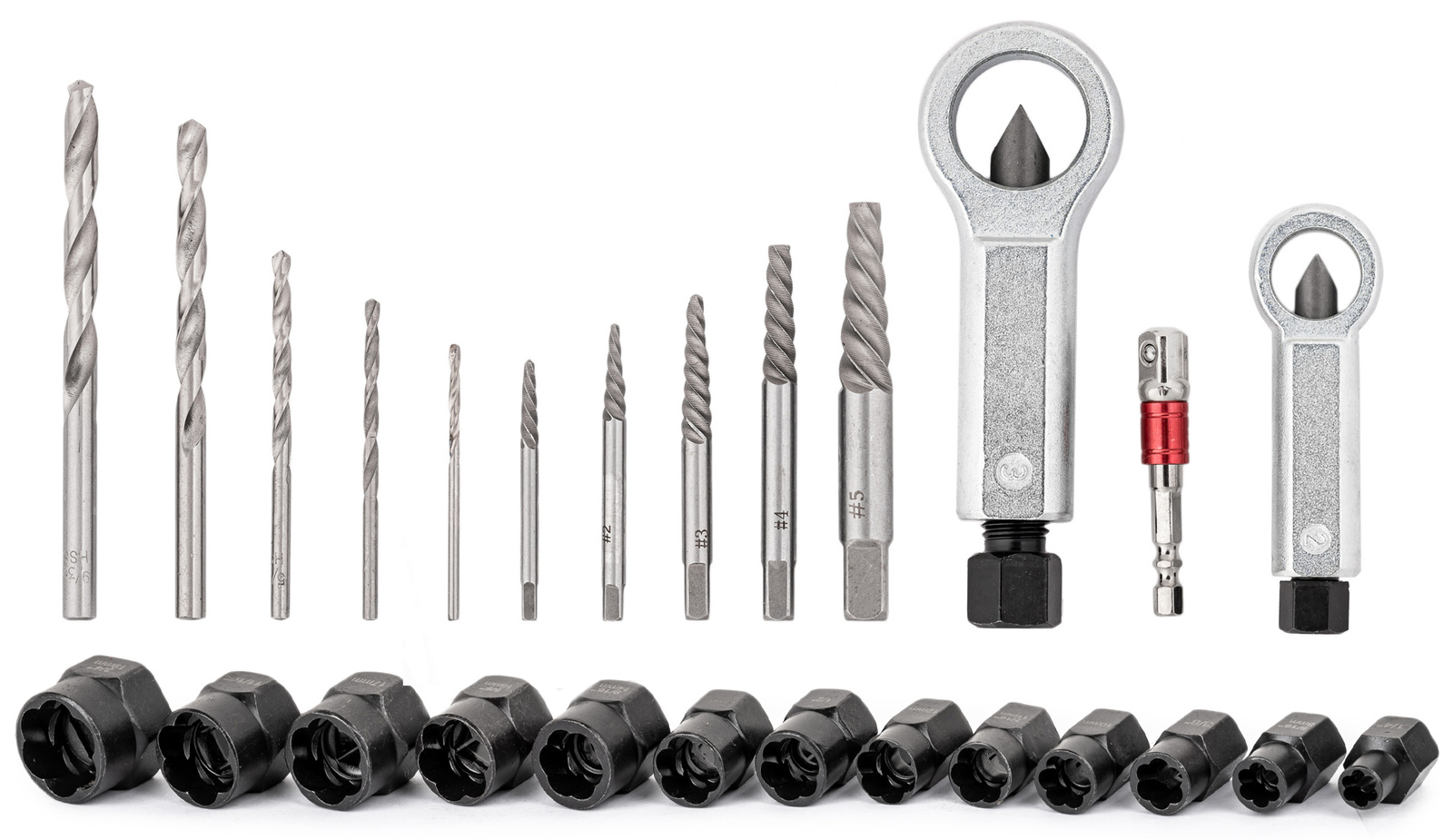 - Wykrętaki o rozmiarach od 3 mm do 10 mm do usuwania uszkodzonych śrub