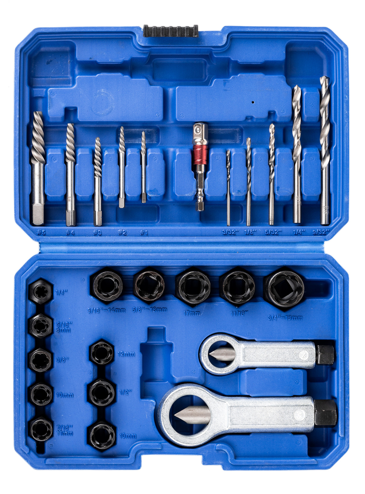26 (nasadki, wiertła, wykrętaki, adapter, obcinaczki do nakrętek)