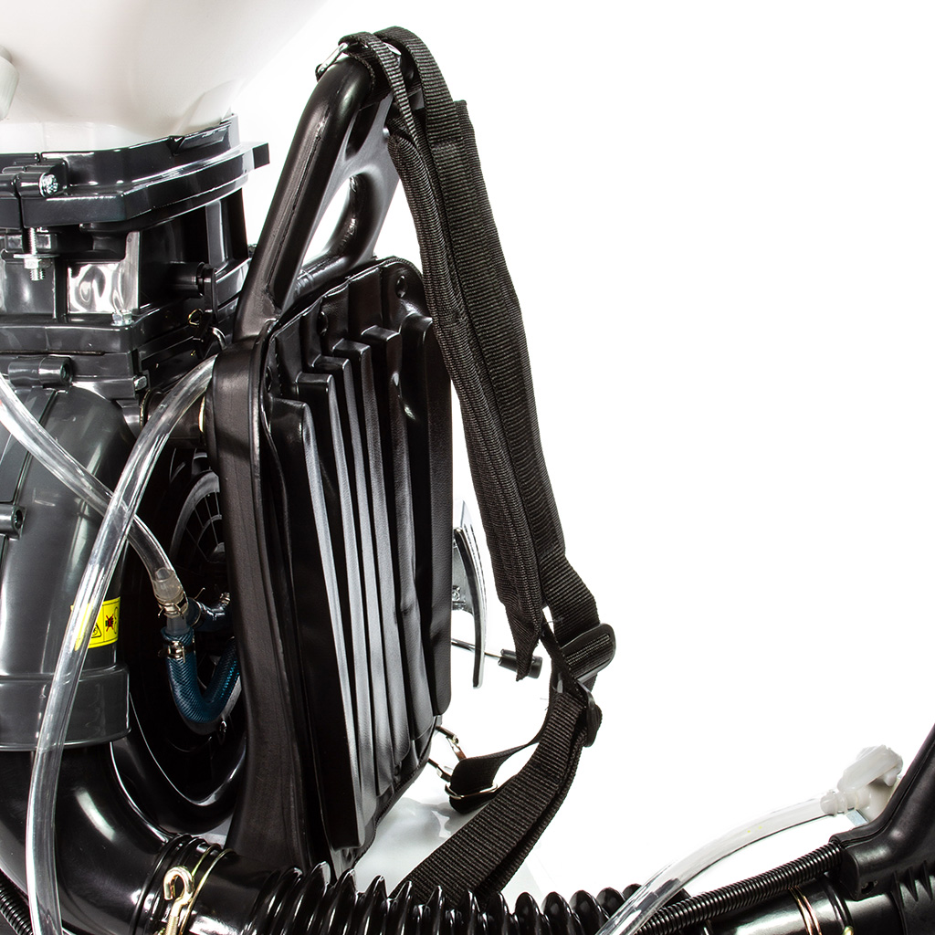 Opryskiwacz wyposażono w wygodny system nośny, co sprawia, że rozkład ciężaru podczas pracy jest komfortowy dla operatora.