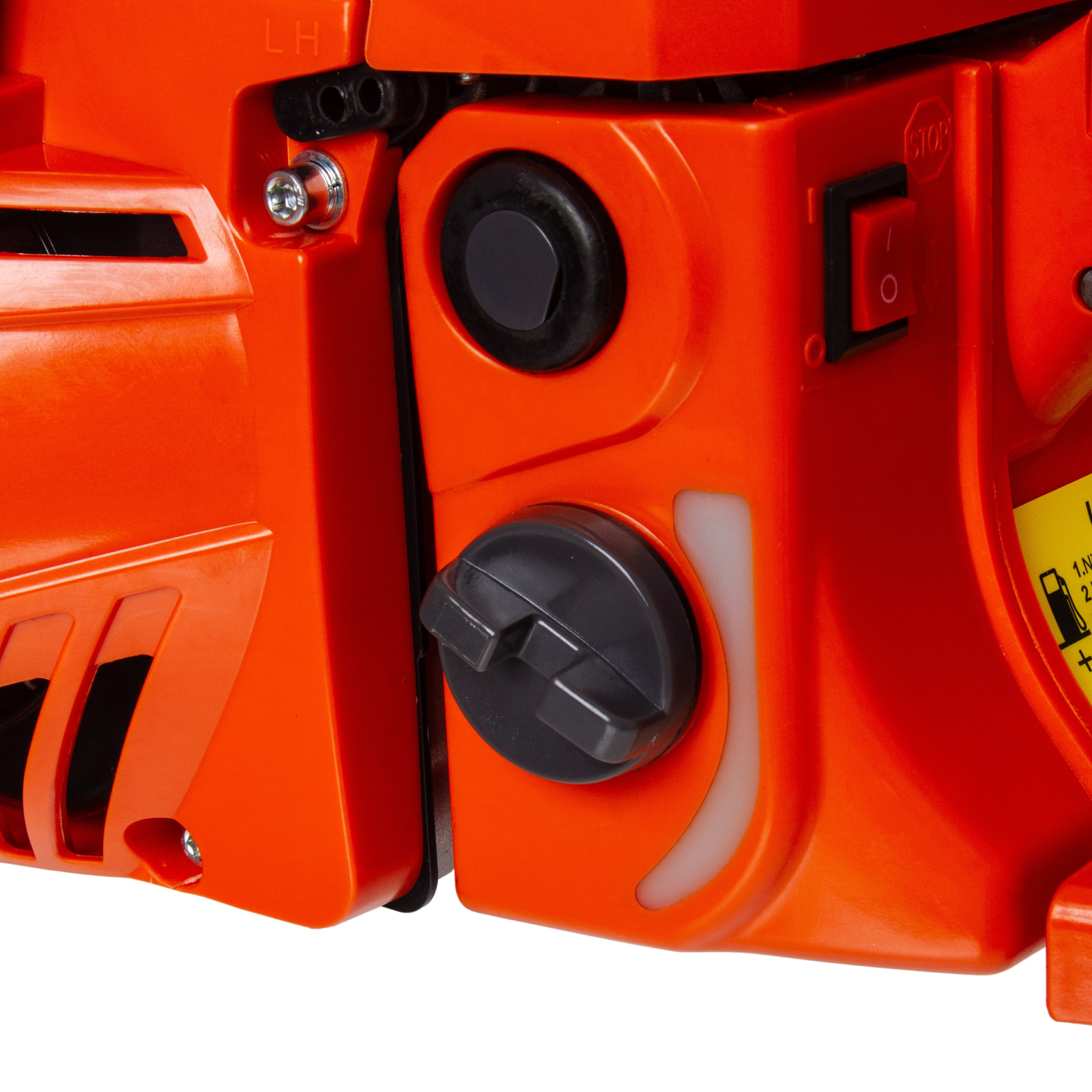 Pilarka wyposażona jest w błyskawiczny napinacz łańcucha, który umożliwia szybkie i wygodne napięcie bez konieczności długiego regulowania. Automatyczne smarowanie łańcucha zapewnia płynną pracę układu tnącego i zmniejsza zużycie elementów roboczych.