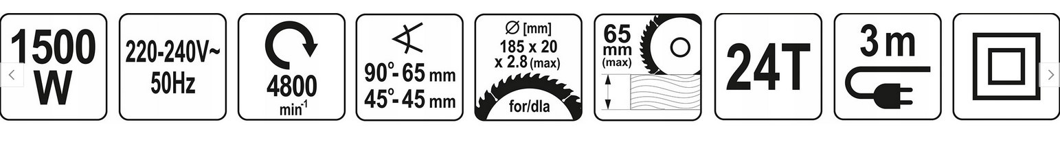 - w zestawie tarcza tnąca o średnicy 185 mm z 24 zębami, ze standardowym otworem mocującym o średnicy 20 mm
