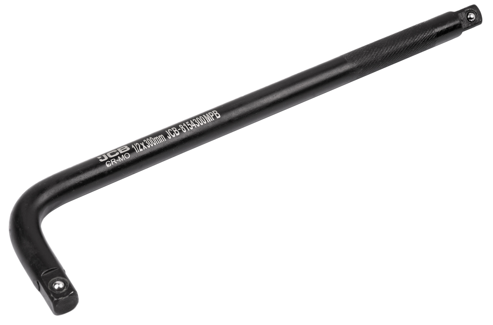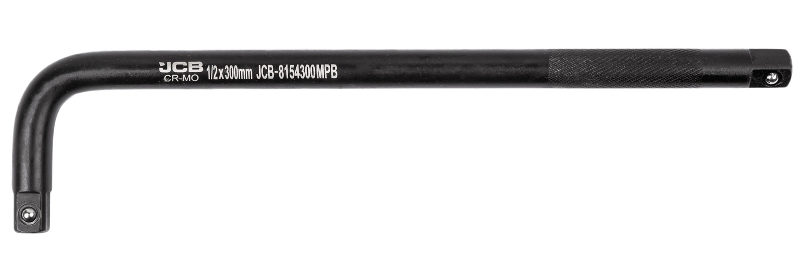Profesjonalne pokrętło udarowe typu L 300 mm 1/2" JCB Tools 8154300MPB to wytrzymałe narzędzie przeznaczone do pracy z nasadkami udarowymi. Wykonane z hartowanej stali chromowo-molibdenowej (Cr-Mo), zapewnia maksymalną odporność na przeciążenia i odkształcenia.
