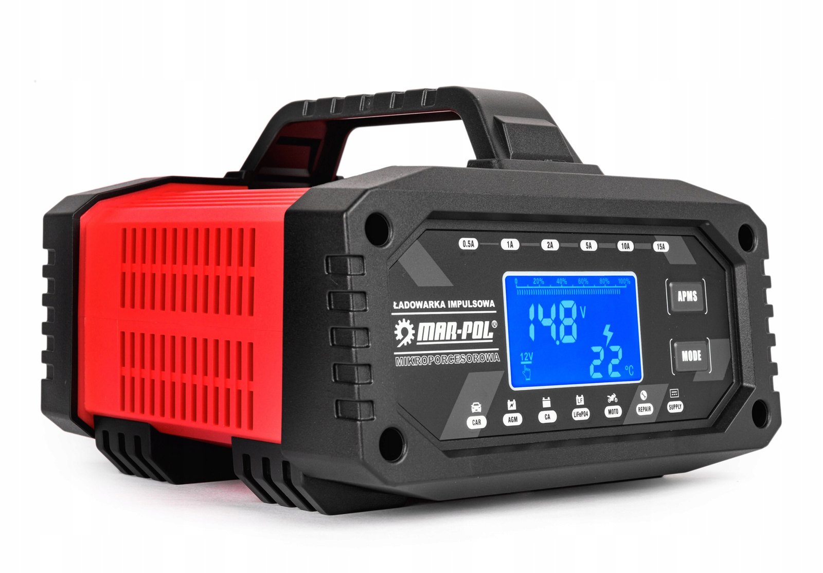 Prostownik impulsowy smart 10w1 funkcja naprawy automatyczny 12v 24v 15A MAR-POL