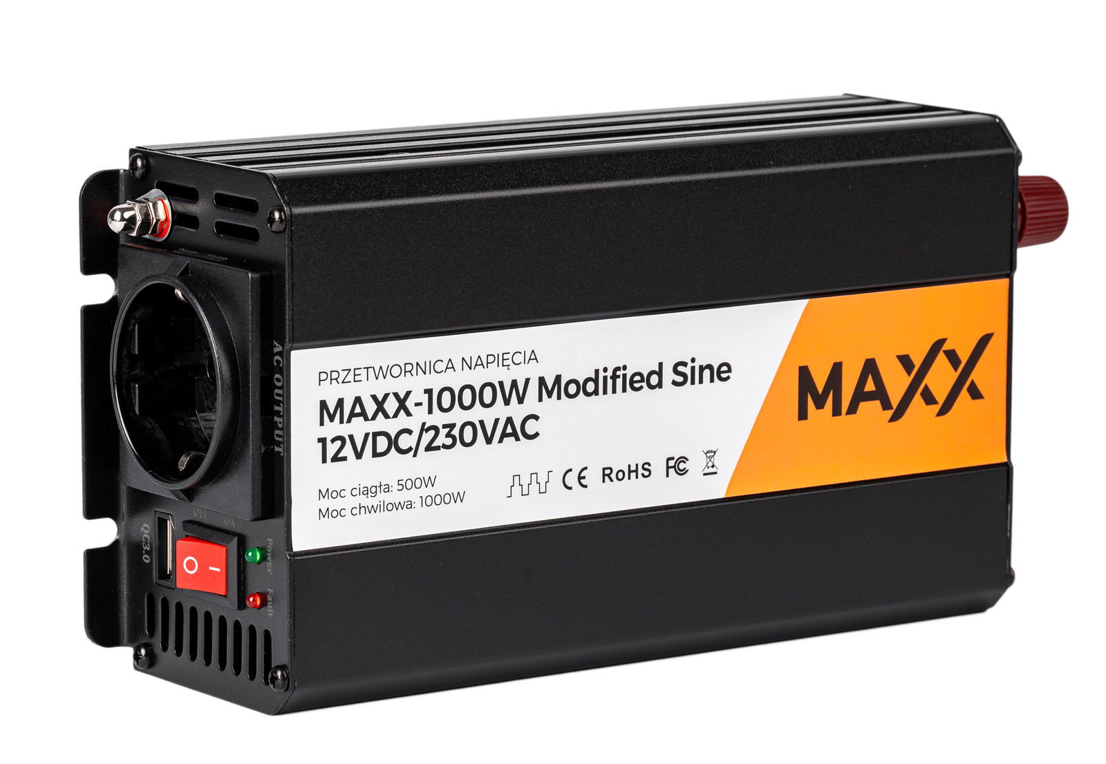 Seria elektronicznych przetwornic napięcia MAXX służy do zasilania urządzeń elektrycznych wymagających napięcia przemiennego 230V z akumulatorów i instalacji samochodowych o napięciu stałym 12V. Przetwornice doskonale sprawdzają się w miejscach gdzie nie ma możliwości bezpośredniego podłączenia do sieci energetycznej.