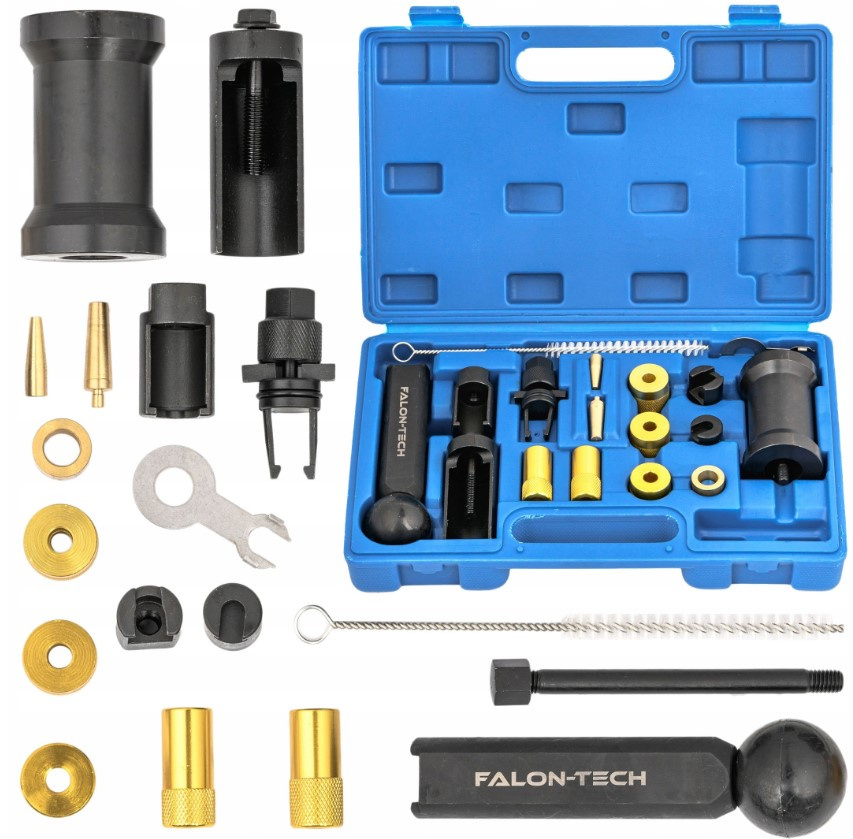 - Ściągacz widełkowy i tulejki/oprawki do chwytania wtryskiwacza w różnych miejscach.
