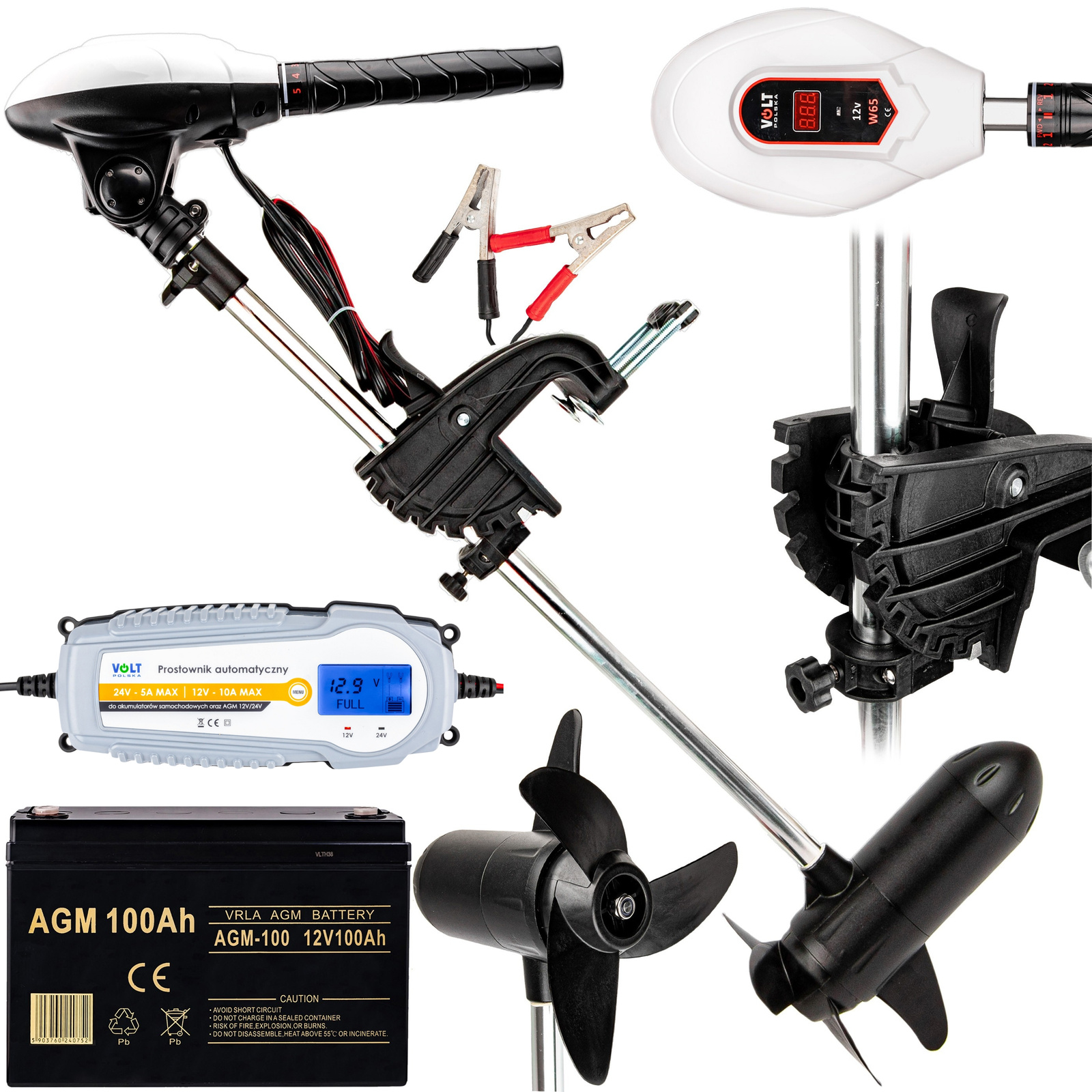Silnik zaburtowy elektryczny 770W 70LBS z akumulatorem 100AH i prostownikiem 10A VOLT POLSKA