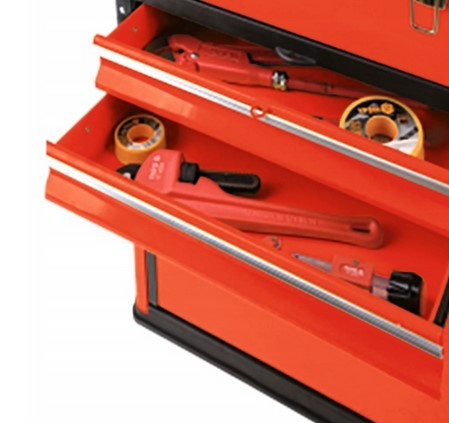 Do szuflad można włożyć tacki narzędziowe YATO z gotowymi zestawami narzędzi.
