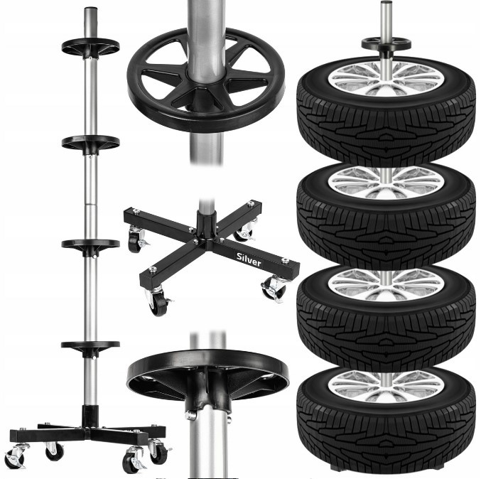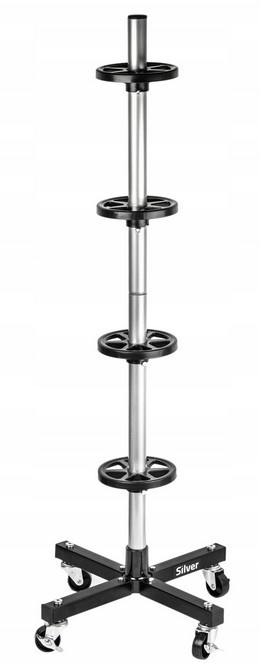Stojak na opony koła felgi regał pionowy z kółkami na 4 opony do garażu SILVER