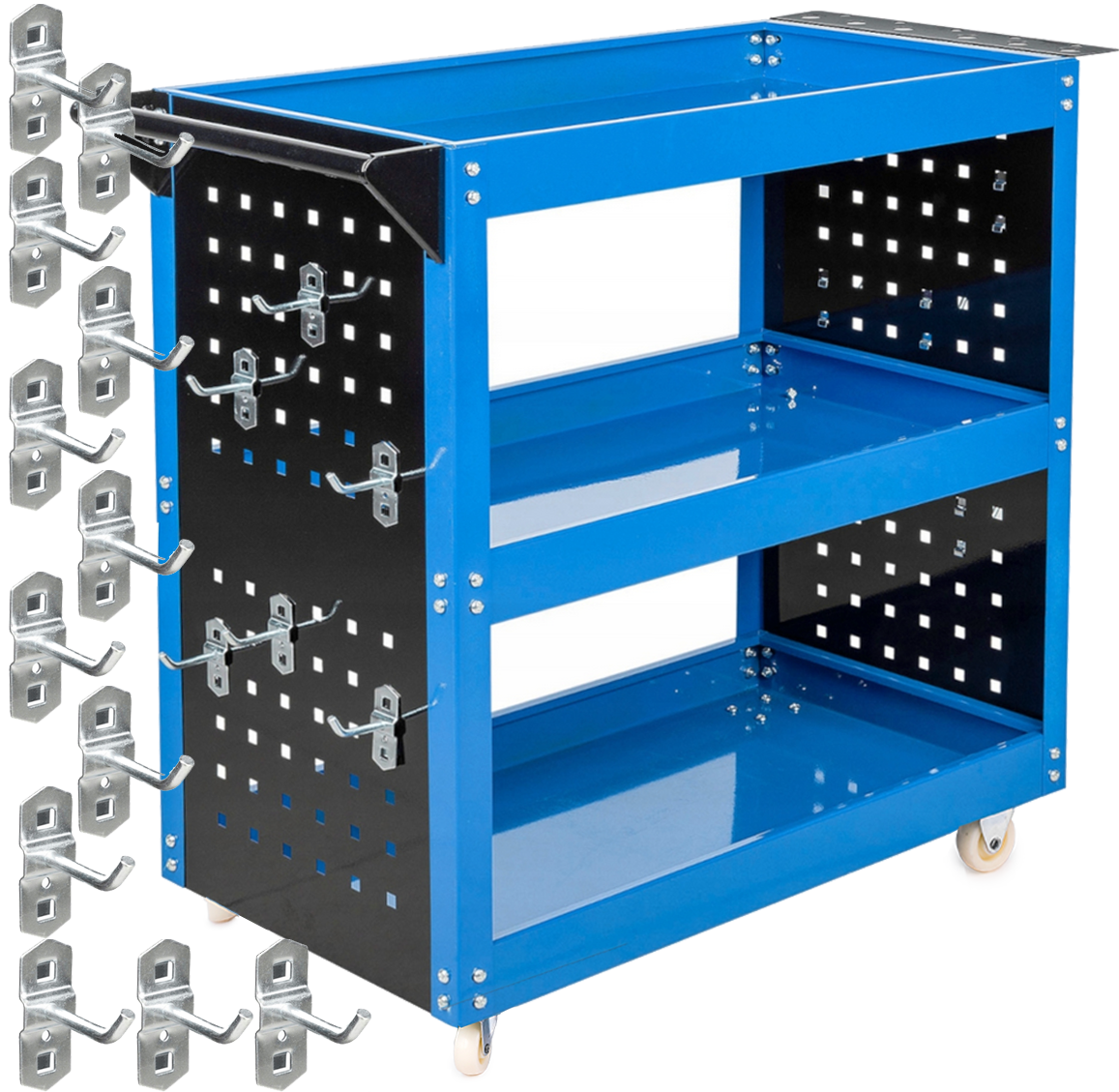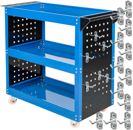 Szafka wózek zestaw warsztatowy narzędziowy skrętne koła 3 półki + haczyki FALON-TECH