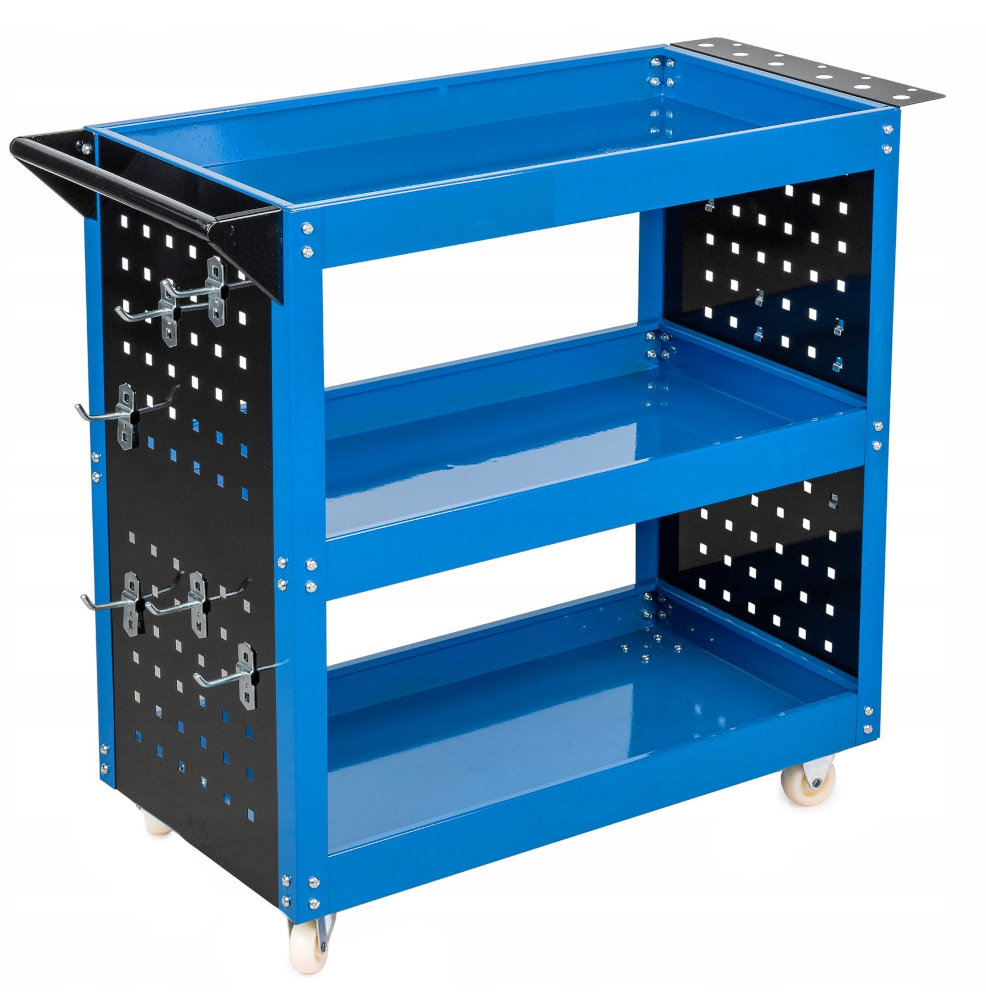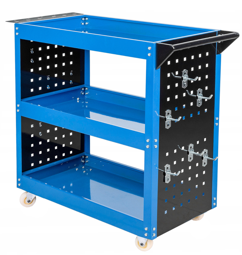 SZAFKA WÓZEK ZESTAW WARSZTATOWY NARZĘDZIOWY SKRĘTNE KOŁA 3 PÓŁKI + HACZYKI FALON-TECH