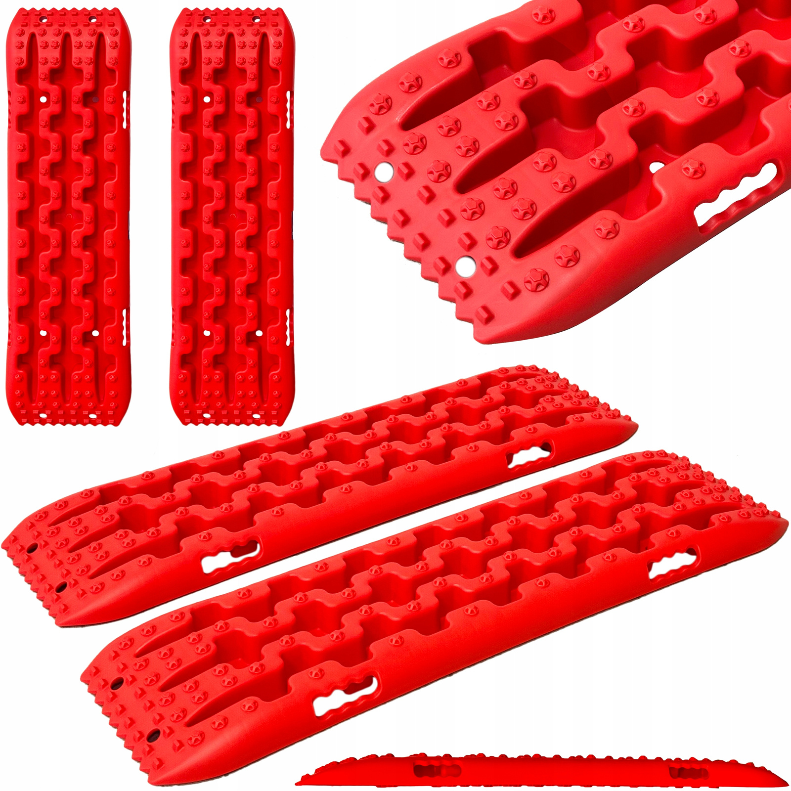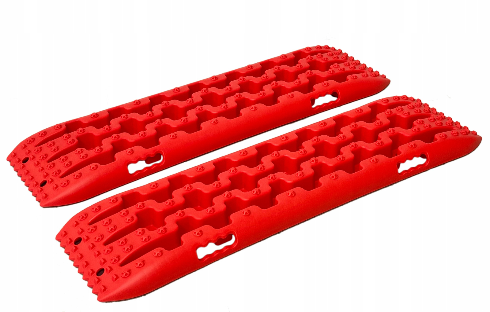 Zestaw zawiera 2 sztuki – umożliwiają obsługę obu stron pojazdu lub szybką pomoc w warunkach, gdy koła napędowe znajdują się w trudnym terenie.