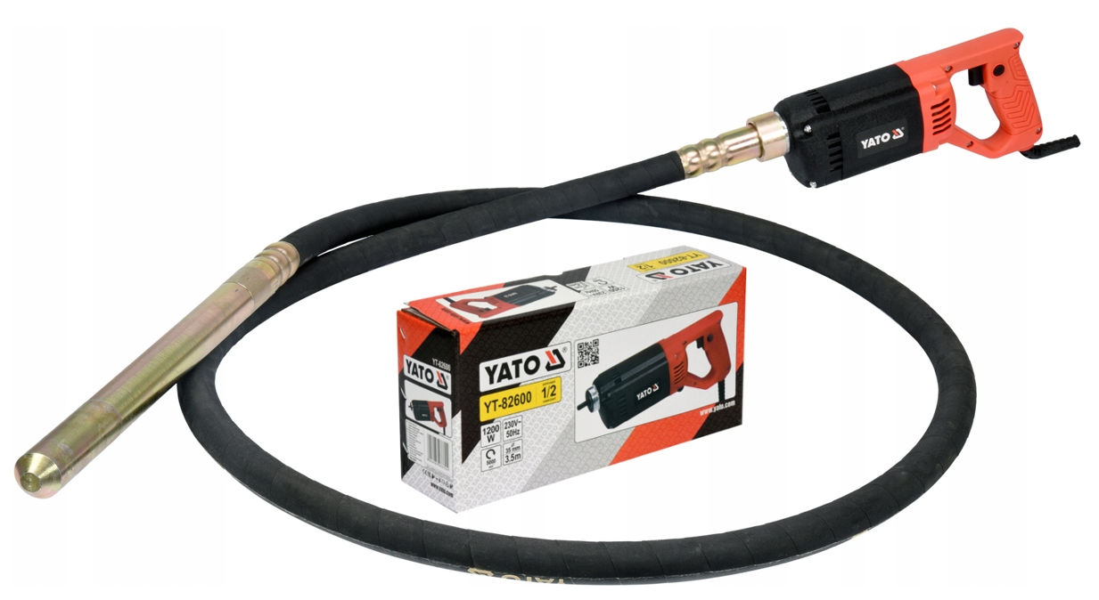 Wibrator do betonu YATO YT-82600 to solidne, funkcjonalne urządzenie o mocy 1200 W, przystosowane do profesjonalnego zagęszczania świeżej mieszanki betonowej. Dzięki buławie 3–3,5 m i średnicy 35 mm, narzędzie doskonale sprawdza się przy słupach, fundamentach i stropach.