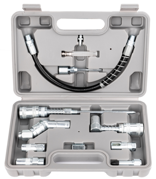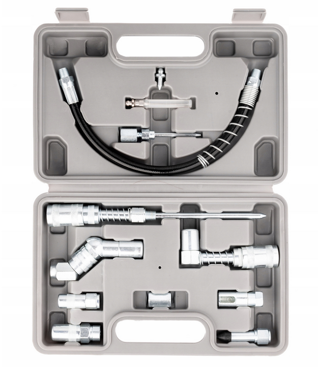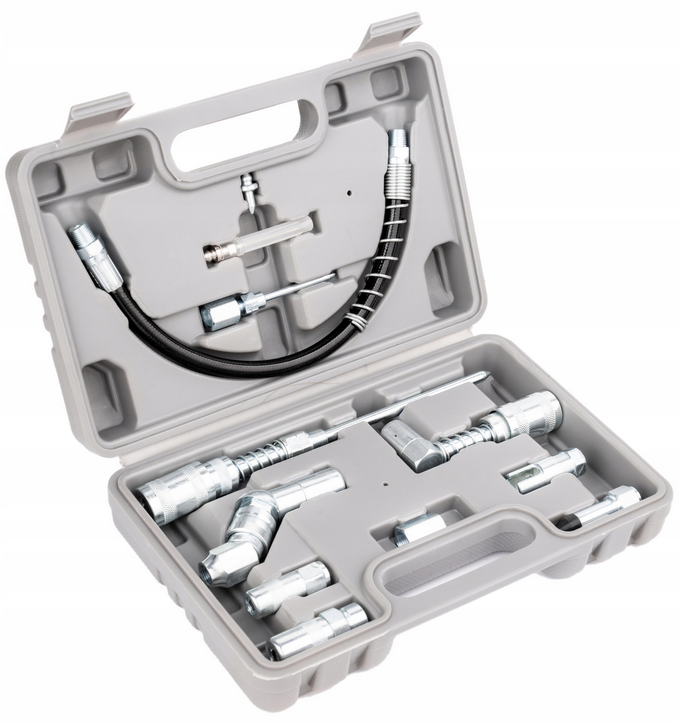 Zestaw końcówek do smarownicy – 12-elementowy komplet w walizce