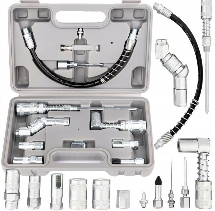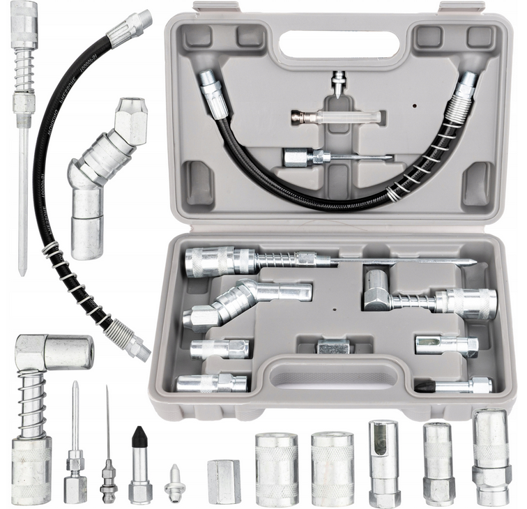Na sprzedaż profesjonalny zestaw końcówek do smarownicy – idealny do warsztatu, serwisu, rolnictwa i prac technicznych. Wszystko zapakowane w poręczną, zamykaną walizkę z tworzywa sztucznego.