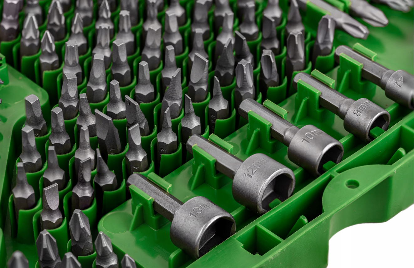 Narzędzia wykonane są z wytrzymałej stali chromowo-wanadowej