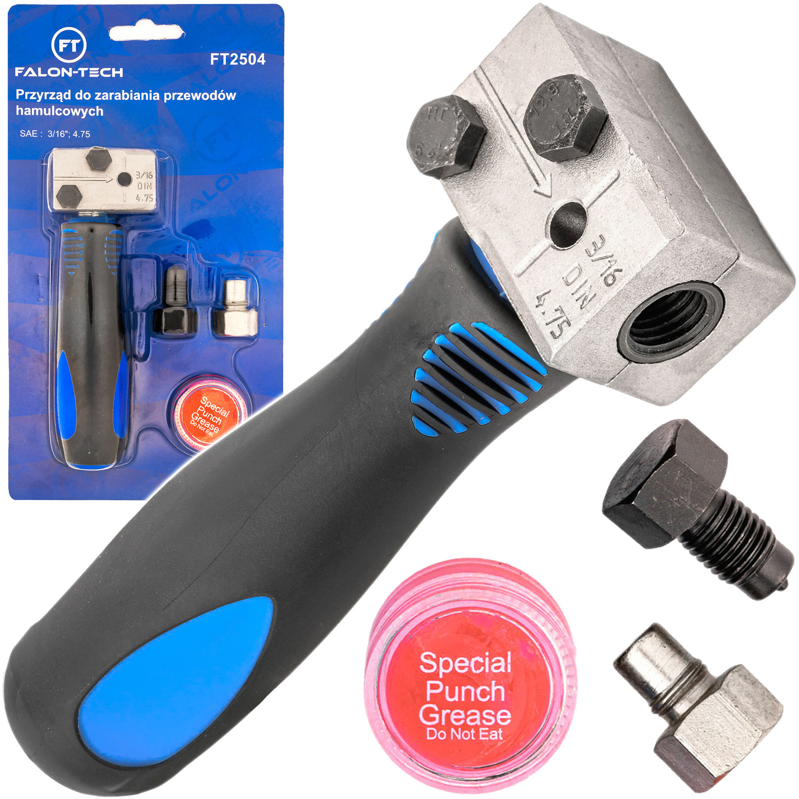Profesjonalny przyrząd do zarabiania przewodów hamulcowych Falon-Tech FT2504 to precyzyjne narzędzie warsztatowe przeznaczone do wykonywania końcówek i kielichów na przewodach hamulcowych.