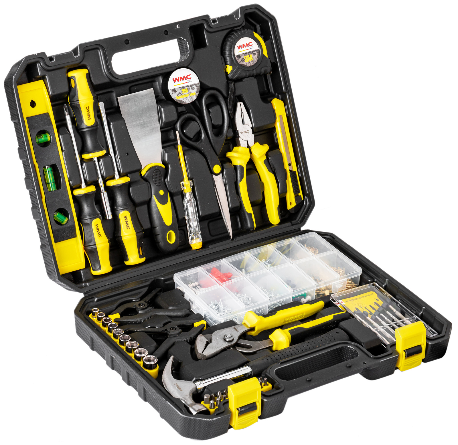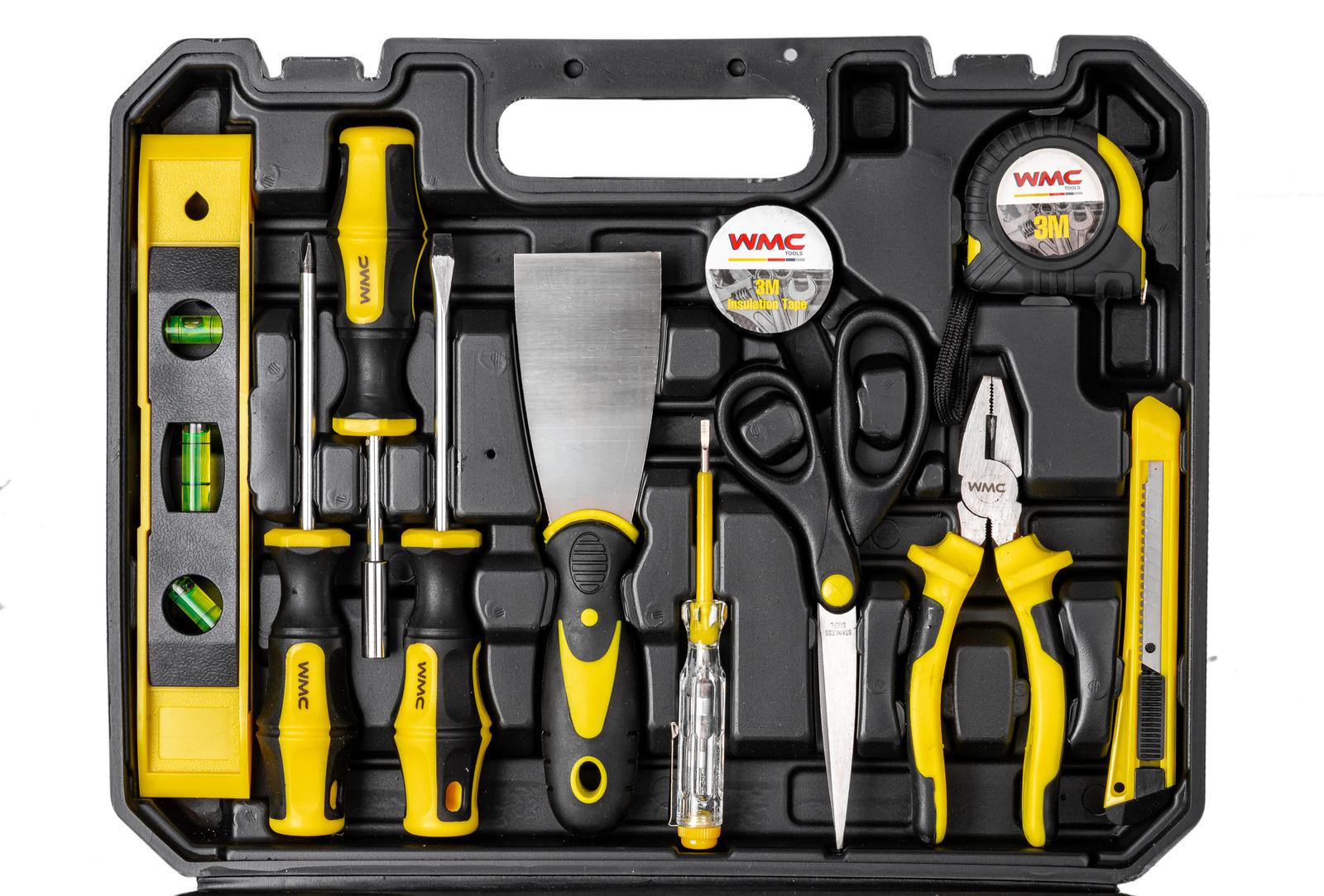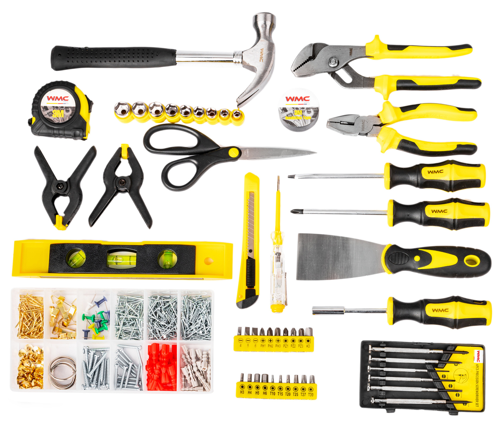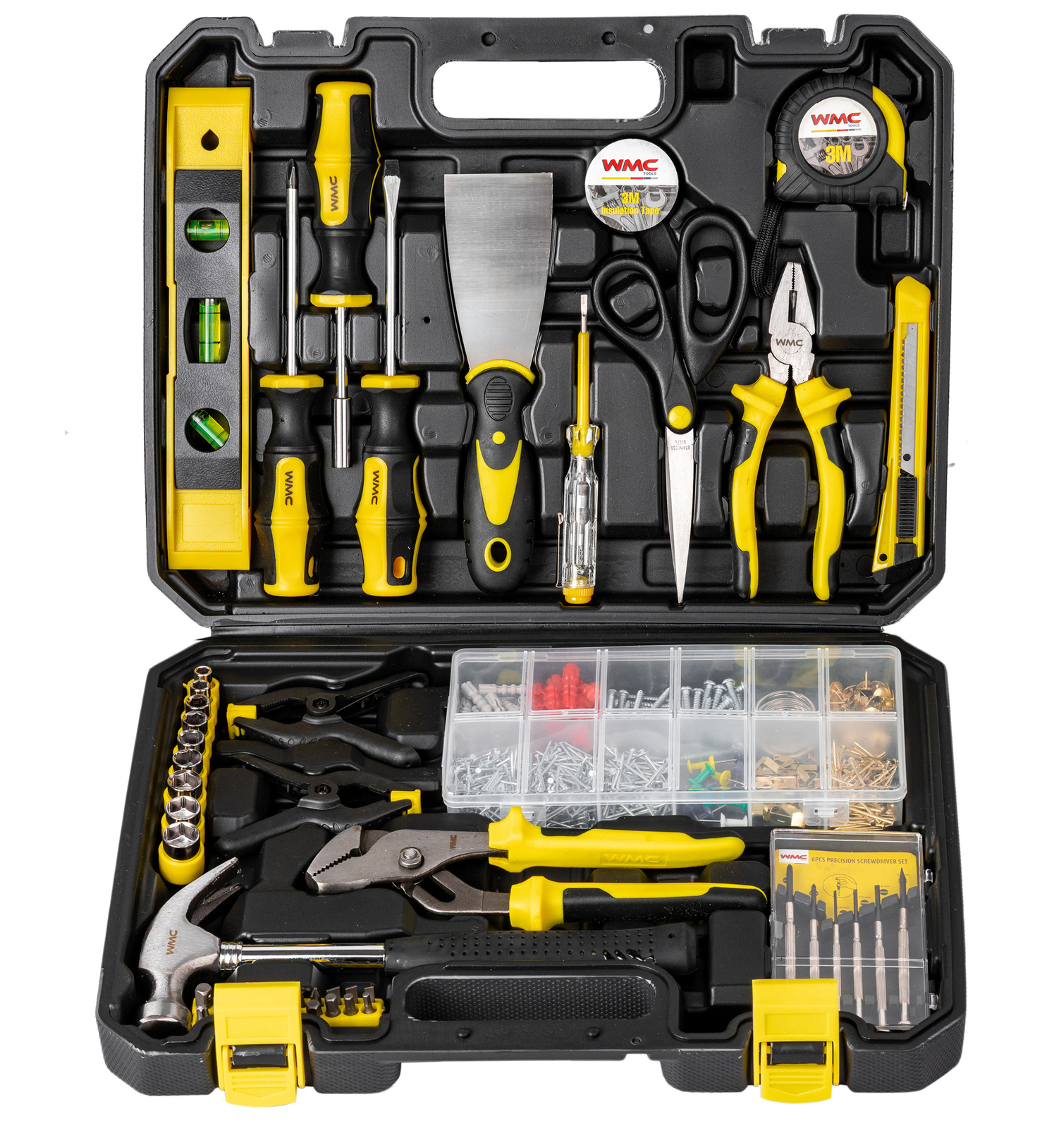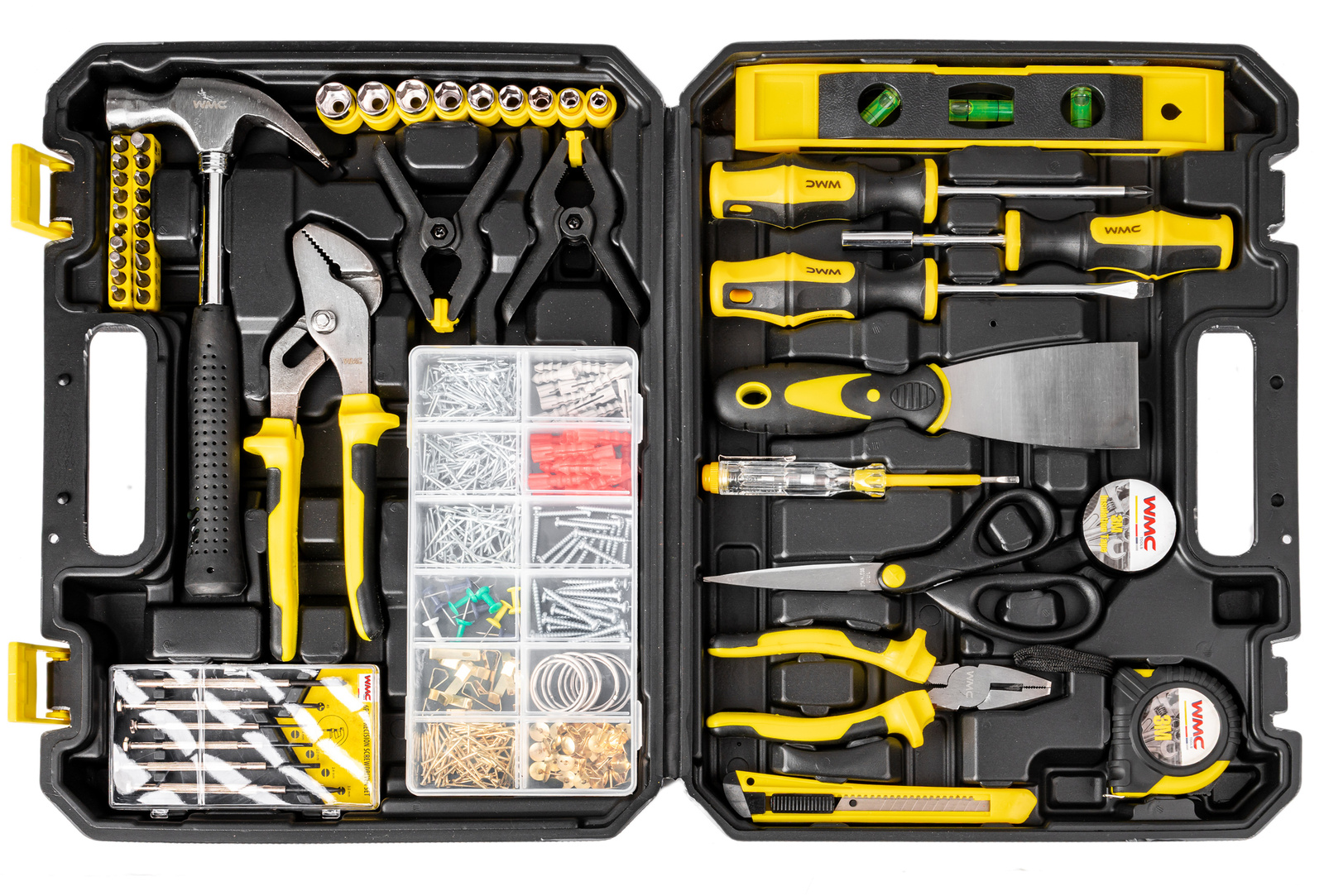 Funkcjonalny zestawy narzędziowy zawierający najbardziej przydatne narzędzia, niezbędne w każdym domu lub warsztacie.