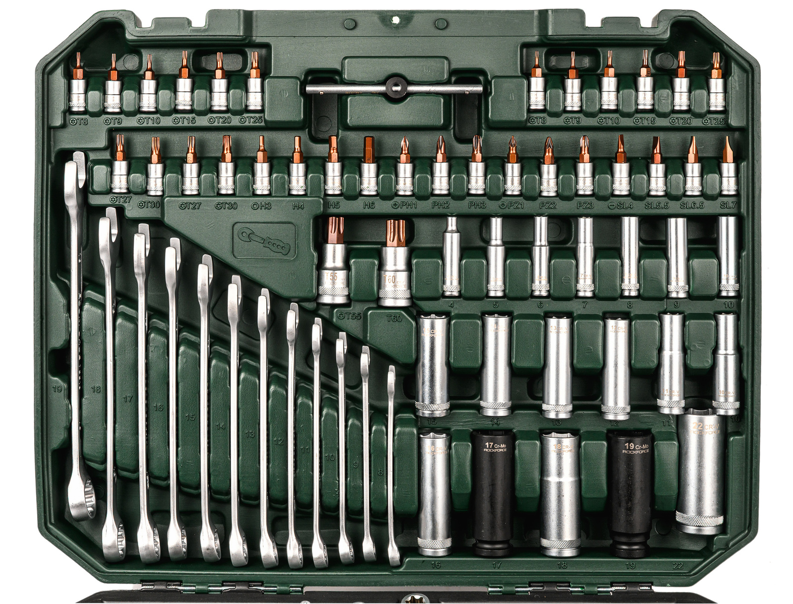 Zestaw narzędziowy warsztatowy klucze nasadowe nasadki płaskie torx 216 el ROCKFORCE