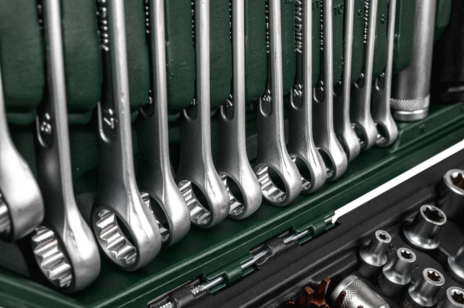 Klucze nasadowe i nasadki wykonane zostały z gwarantującej długą żywotność stali CrV.
