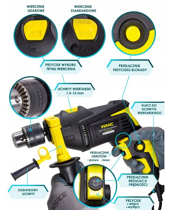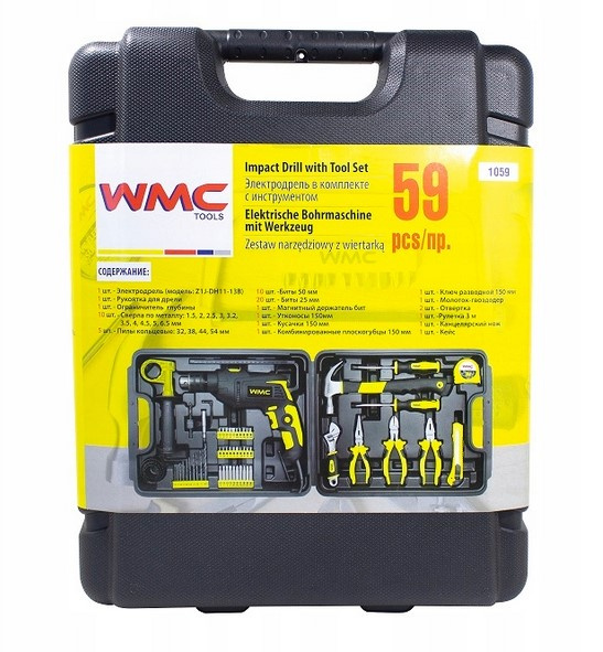 Zestaw narzędziowy warsztatowy wiertarka młotek wkrętaki bity szczypce 59el WMC