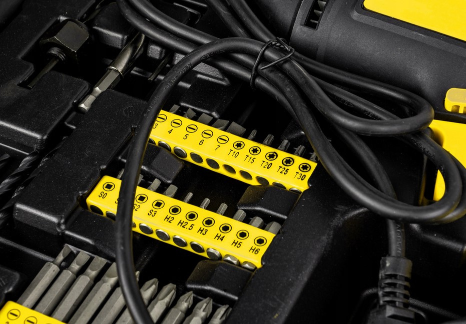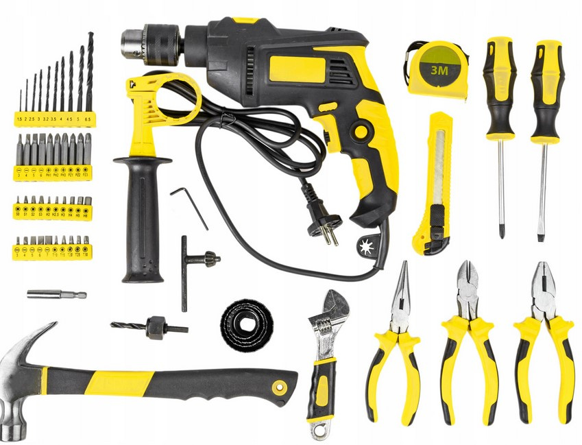 Funkcjonalny zestaw zawiera najbardziej przydatne narzędzia niezbędne w każdym domu lub warsztacie.