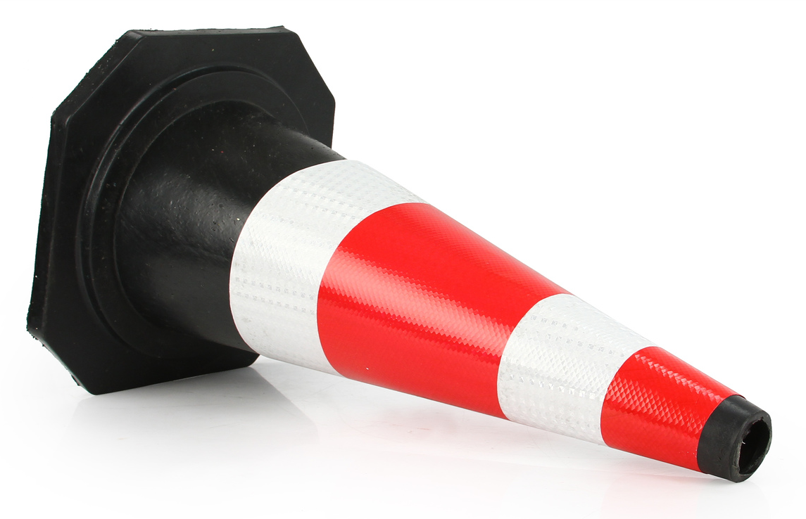 Pachołek ostrzegawczy z odblaskowym paskiem ostrzegawczym.