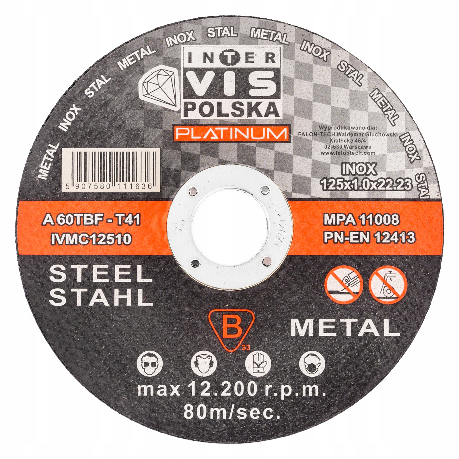 Zestaw tarcze do cięcia metalu stali aluminium inox 125x1,0 50szt INTER-VIS
