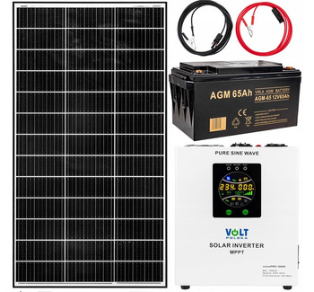 Gotowy zestaw fotowoltaiczny 140w 100Ah (panel solarny, przetwornica 1000s, akumulator, przewody) + płyn VOLT POLSKA